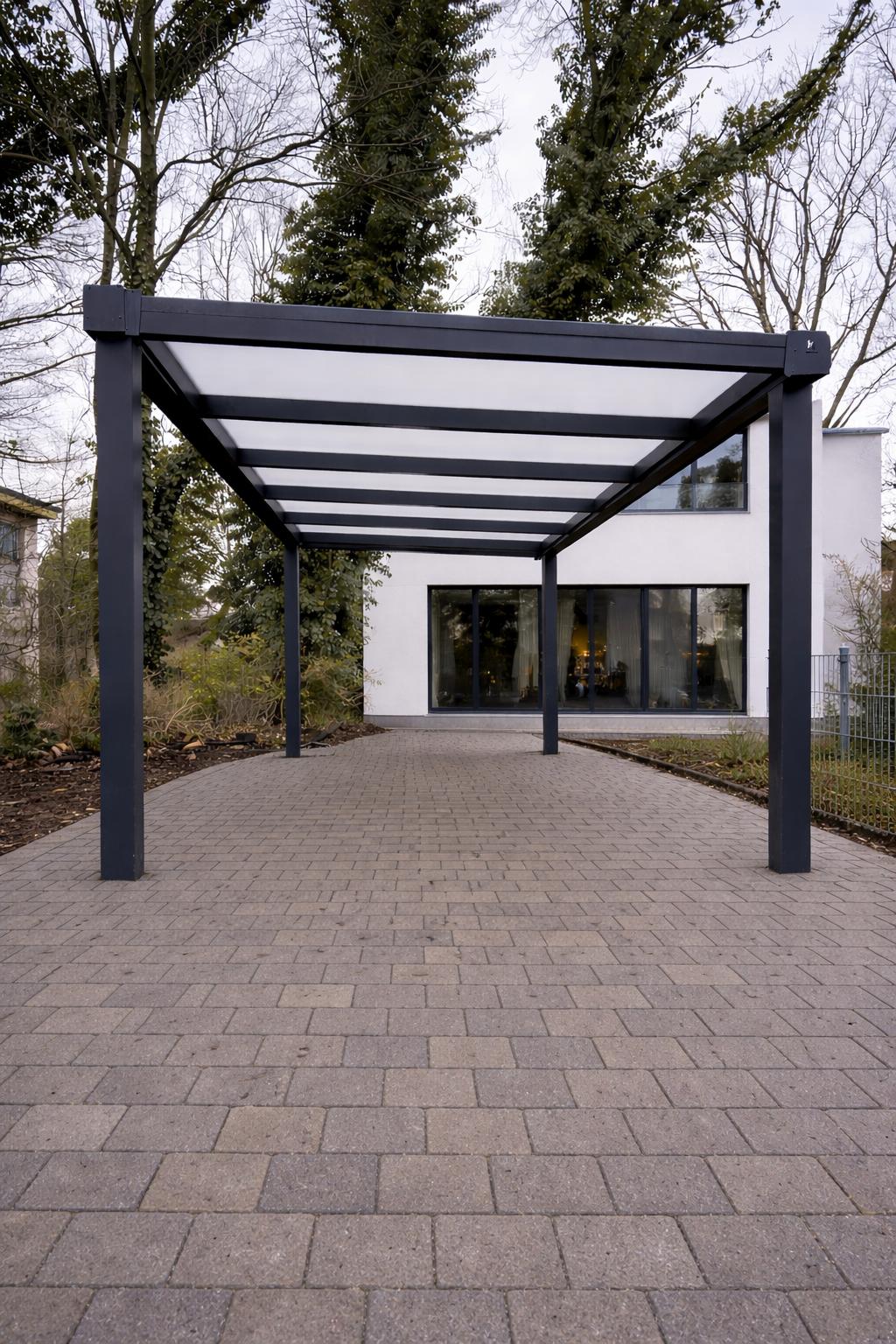 Gleichzeitig sorgt das moderne, offene Design für eine elegante Optik und fügt sich harmonisch in jede Haus- und Grundstücksgestaltung ein. Der Aluminium-Carport ist eine langlebige, stabile und stilvolle Lösung, um Ihr Fahrzeug sicher und komfortabel zu schützen.